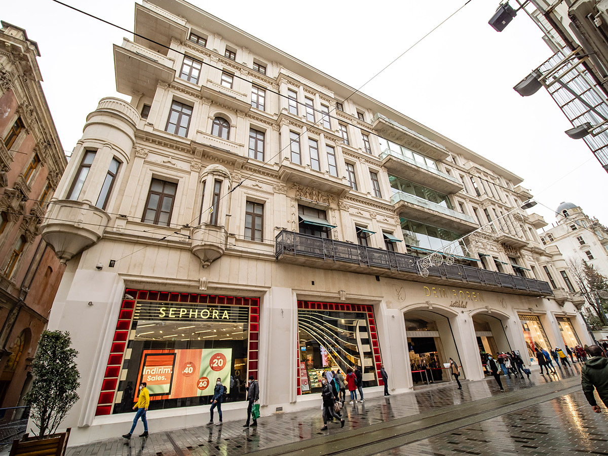 İstiklal Caddesi’nde Vakko’nun 2006 yılında boşalttığı binada Mango açılır. İstiklal Caddesi’nde o ana kadar bilinen en büyük satın almayı gerçekleştiren İspanyol Mango'nun 25 milyon dolar ödediği belirtilir. (Wow Turkey, 2016) (Fotoğraf: Orhan Cem Çetin) (Görsel Açıklama: Mango binası)