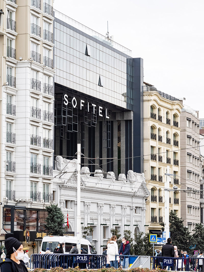 Taksim Sahnesi yanındaki Maksim Gazinosu ile birlikte alışveriş merkezi yapılmak üzere yıkılır ve yerine otel yapılmaya başlanır ve AKM kapanır. (Fotoğraf: Orhan Cem Çetin) (Görsel açıklama: Taksim Sahnesi yerine Sofitel İstanbul Oteli, 2021)