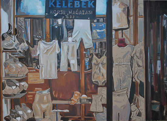 İstikal Caddesi üzerindeki 80 yıllık Kelebek Korse zorla tahliye edilen yerlerden biridir. Eller Sanat Evi, ofislerin bulunduğu Hıdivyal Palas, Armada Restoran ve Lebon Pastanesi gibi Beyoğlu kimliği için çok önemli işletmeler kanundan etkilenir. (Görsel Kaynak: Agos Arşivi)